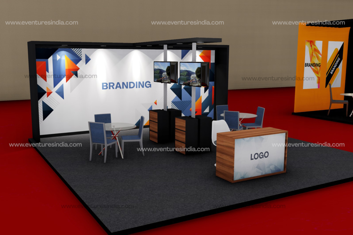 Exhibitions Our skillfully designed exhibition stalls will showcase your products in all their finest glory. Colorful stalls Creative installation Stunning designs